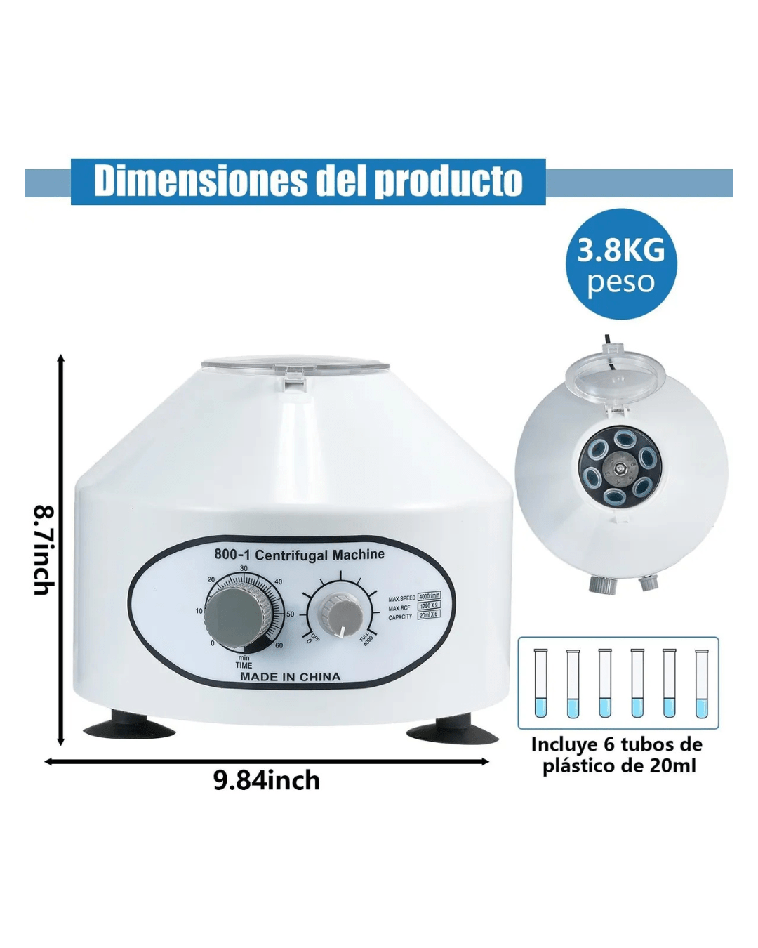 La Máquina Centrífuga de Laboratorio 6 × 20 ml a 4000 rpm es un equipo de precisión especialmente diseñado para separación de muestras en aplicaciones clínicas, de investigación, estéticas (por ejemplo en preparación de plasma o sueros) y de laboratorio en general. Su diseño compacto y funcional la hace adecuada para clínicas estéticas, centros biomédicos, laboratorios pequeños y profesionales que requieren un instrumento confiable y versátil.